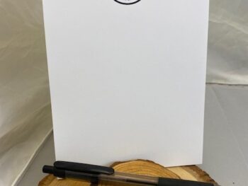 White paper Notepad with Black lettering round Weed snob logo 5″ x 7″, 40 pages